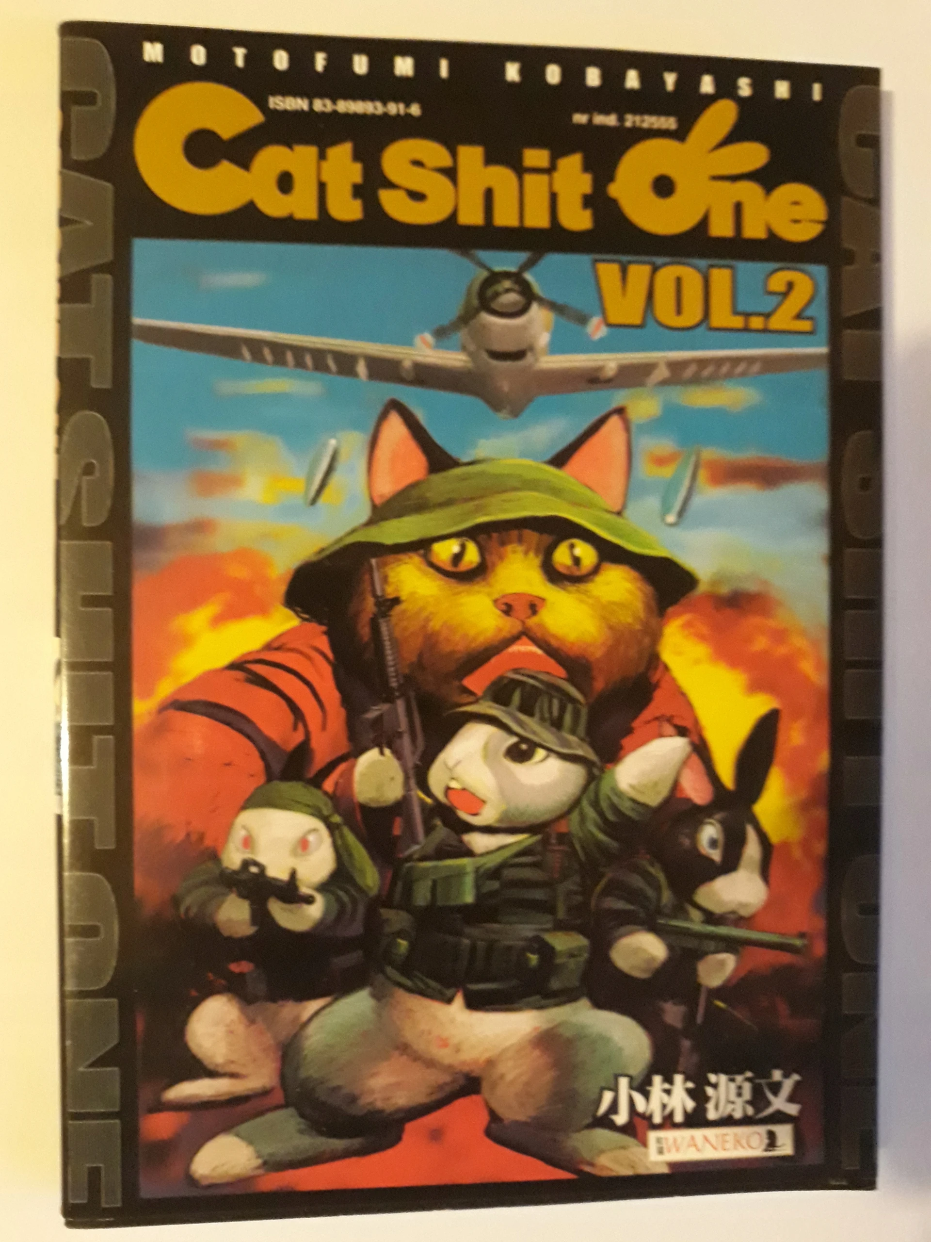 Historia tego komiksu zaczęła się od serii DOG SHIT ONE rysowanej przez autora dla COMBAT MAGAZINE. Była to opowieść o absolwencie West Point, który prosto z akademii trafia do Wietnamu. Komiks nie wydawał się jednak Kobayashiemu zbyt udany. Któregoś dnia przesłał do redakcji szkice mangi z królikami w rolach głównych. Redaktor naczelny zapytał czy wobec tego przechodzimy na CAT SHIT ONE. I tak powstał tytuł. Komiks opowiada historie jednostki zwiadowczej, w której skład wchodzi trzech wiernych przyjaciół, których udziałem są nie tylko traumatyczne przeżycia wojenne, ale również brak czytelnych czarno-bialych sytuacji, w których wybór wydaje się łatwy. Manga nie gloryfikuje roli amerykańskiej armii w Wietnamie, pokazuje prawdę o wojnie, jednak bez potwornie krwawych scen, jakich nie szczędzą nam filmy. Poza Amerykanami w komiksie występują również inne nacje przedstawiane przez rożne rasy zwierząt, oficjalnie nie zaangażowane w konflikt takie jak Rosjanie, Chińczycy czy Japończycy. Niektórzy krytycy porównują CAT SHIT ONE do komiksu USAGI YOJIMBO Stana Sakai ze względu na to, ze oba poruszają poważne tematy historyczne stosując jednocześnie zabieg animizacji. CAT SHIT ONE wbrew pozorom to komiks z olbrzymim ładunkiem autentyzmu. Bardzo realistycznie przedstawione jest w nim wiele elementów tła, realia wojny, oraz stan i wyposażenie wojskowe. Do komiksu dołączanych jest kilka stron DOG SHIT ONE oraz dość dokładny opis podłoża konfliktu i przebiegu wojny. POLECAMY WSZYSTKIM MIŁOSNIKOM HISTORII I MILITARIÓW!
