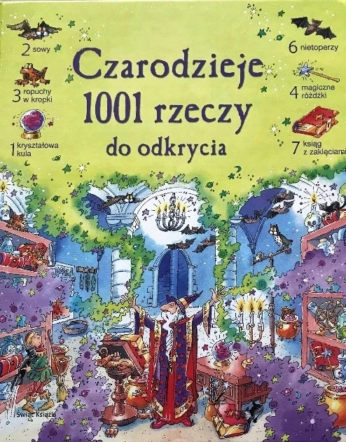 Tania książka :To niezwykła i pomysłowa książeczka, która połącza zabawę z nauką dla najmłodszych. Kolorowe, pełne uroku ilustracje z życia czarodziei wciągną każdego malucha w fascynujący świat spostrzegawczości i liczenia. To prawdziwa przygoda dla małych odkrywców!