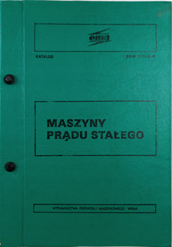Katalog „Maszyny prądu stałego” to specjalistyczna publikacja techniczna poświęcona konstrukcji, zastosowaniu oraz produkcji maszyn elektrycznych prądu stałego w polskim przemyśle elektromaszynowym. Zawiera szczegółowe opisy oraz liczne czarno-białe fotografie części i kompletnych zespołów maszyn, co czyni go nie tylko dokumentacją techniczną, ale także cennym źródłem historycznym dla badaczy rozwoju polskiej myśli inżynierskiej.
