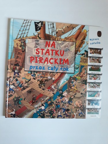 Przyglądając się ilustracjom dziecko może przeżyć fantastyczne przygody podczas podróży z piratami! Dzięki zakładkom widocznym z prawej strony może podróżować w czasie i zobaczyć, co się dzieje na statku w różnych miesiącach. Dobrą zabawą będzie odnajdywanie rozmaitych postaci i przedmiotów na każdym etapie tej wspaniałej przygody! Niektóre części statku specjalnie nie zostały narysowane, żeby można było zobaczyć także to, co dzieje się pod pokładem.