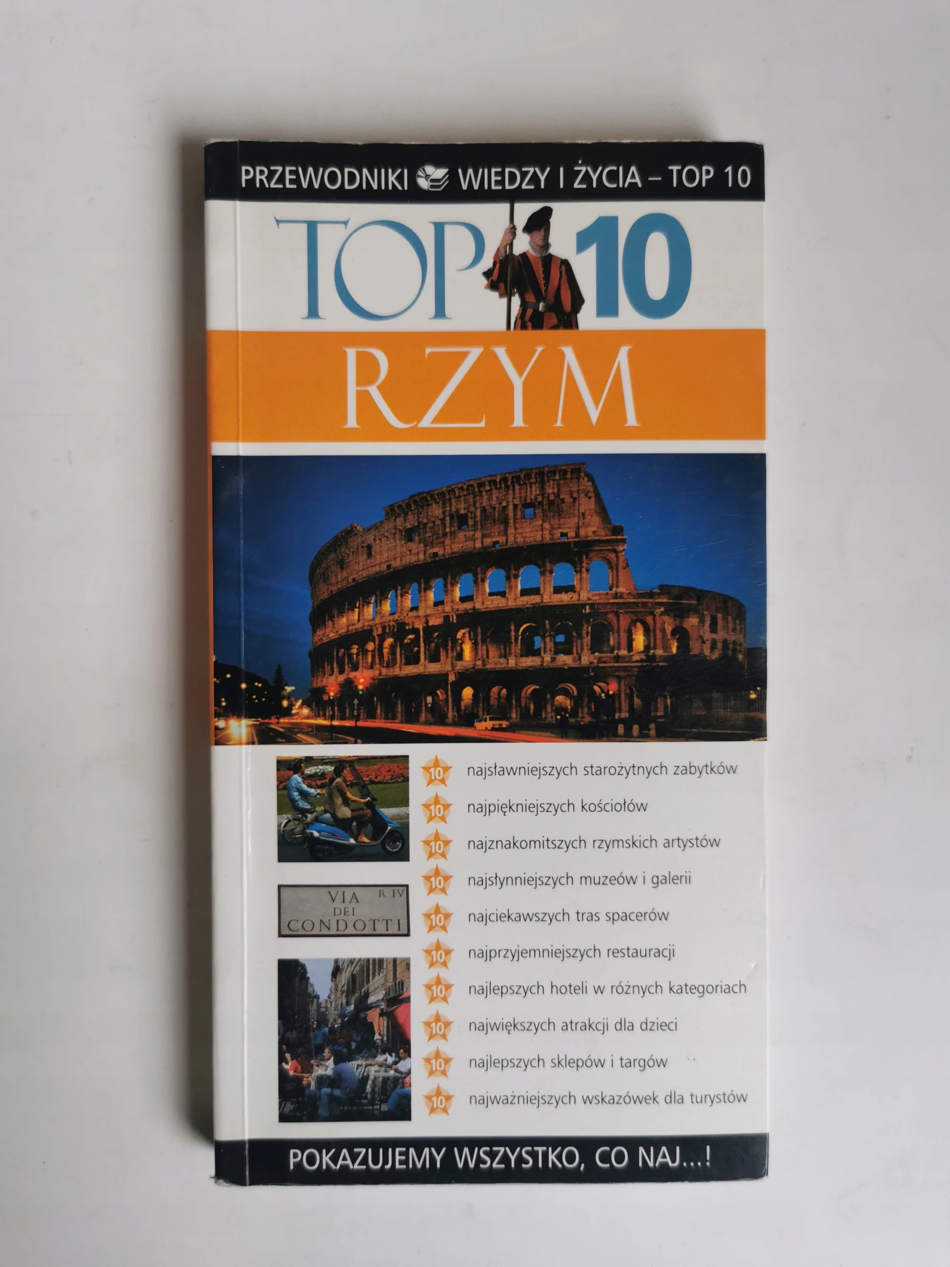 Tania Książka - Przewodnik przedstawia to wszystko, co w Rzymie jest NAJ... Należy więc zobaczyć choć jeden z 10 najpiękniejszych kościołów, zwiedzić 10 najsłynniejszych muzeów i galerii, a także zachwycić się 10 najsławniejszymi zabytkami starożytnego Rzymu. Warto też odwiedzić którąś z 10 najprzyjemniejszych restauracji i wybrać choć jedną z 10 najciekawszych tras spacerowych, pamiętając o 10 najważniejszych wskazówkach dla turystów.