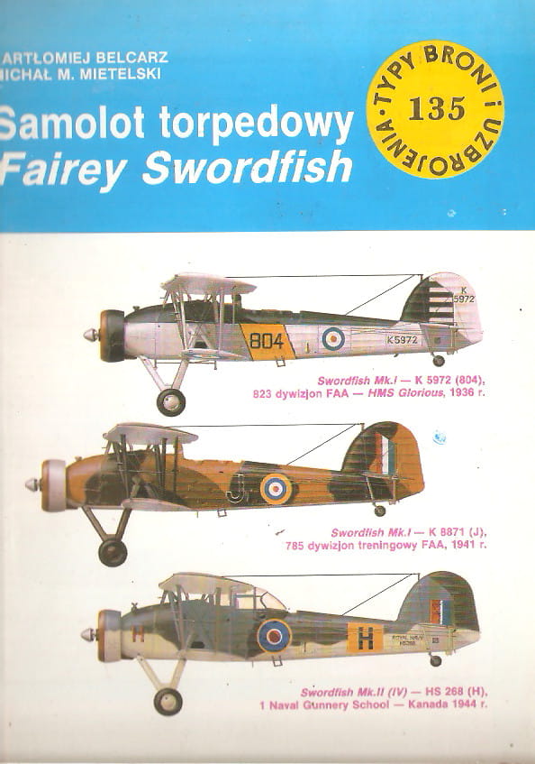 Autorzy przedstawiają genezę projektu Fairey Swordfish, który powstał w latach 30. XX wieku jako samolot torpedowy dla Royal Navy. W książce omówiono proces projektowania, pierwsze próby w locie oraz wprowadzenie do służby w Fleet Air Arm. Szczególną uwagę poświęcono roli Swordfish w początkowych latach wojny, kiedy mimo przestarzałej konstrukcji odgrywał kluczową rolę w operacjach morskich.