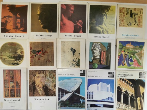 Tania książka - w skład zestawu wchodzą następujące pozycje: Architektura Rumunii, Alvar Aalto, Maciej Nowicki, Sztuka chińska 4 części, Wyspiański pastele i witraże, Sztuka Grecji 4 części, De Chirico malarstwo metafizyczne, Godzinki księcia de Berry