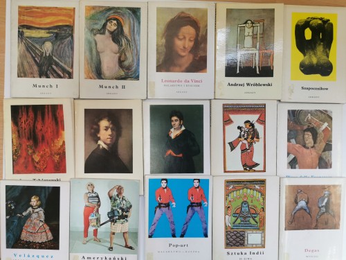 Tania książka - w skład zestawu wchodzą następujące pozycje: Amerykański hiperrealizm, Velazquez infanci i infantki, Pop-art Malarstwo rzeźba, Sztuka Indii, Degas, Piero della Francesca, Sztuka Indii Kryszna, Goya portrety, Rembrandt Autoportrety, Jerzy Tchórzewski, Munch 2 części, Leonardo da Vinci, Andrzej Wróblewski, Szapocznikow