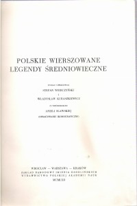 POLSKIE WIERSZOWANE LEGENDY ŚREDNIOWIECZNE