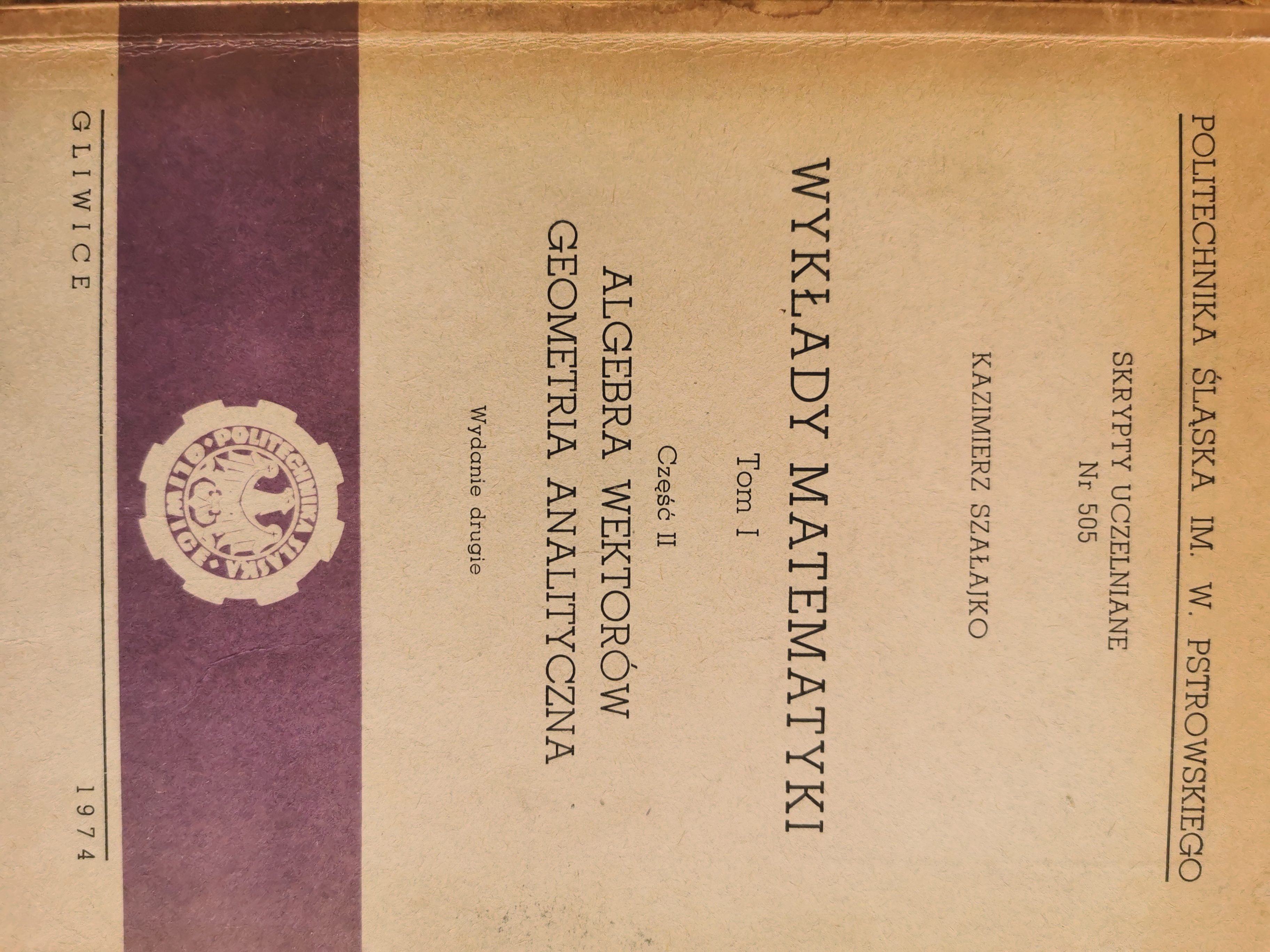 Kompleksowe opracowanie algebry wektorów i geometrii analitycznej w formie skryptu uczelnianego autorstwa Kazimierza Szałajko. Idealne dla studentów kierunków technicznych.