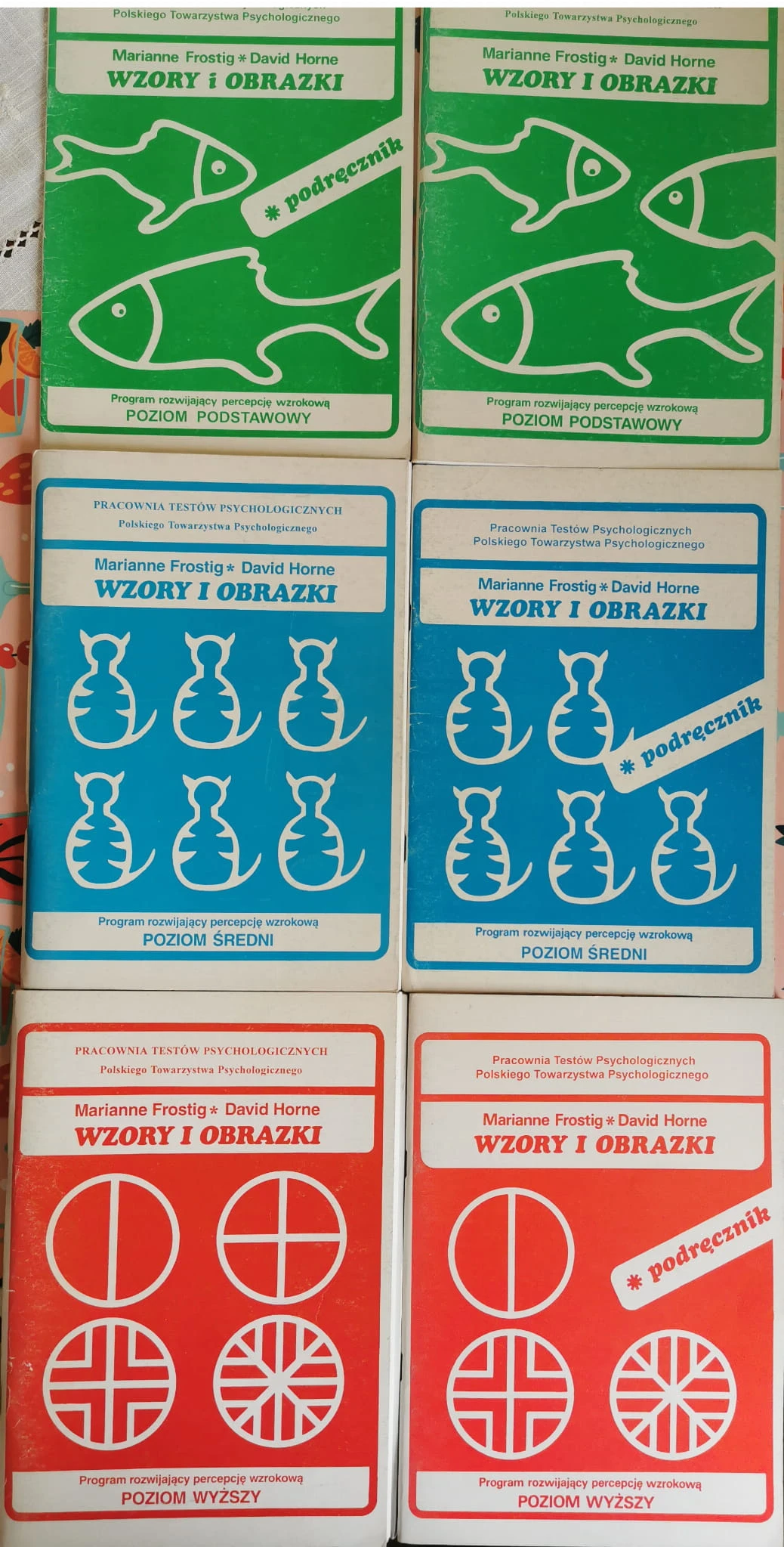 "Wzory i obrazki - podręcznik. Program rozwijający percepcję wzrokową. Poziom wyższy" to publikacja autorstwa Marianne Frostig i Davida Horne'a. Zestaw składa się z 6 książek, podzielonych na trzy poziomy: podstawowy, średni i zaawansowany. Każdy poziom zawiera po dwa tomy. Wszystkie książki są psychologicznymi testami opracowanymi przez Polskie Towarzystwo Psychologiczne.
