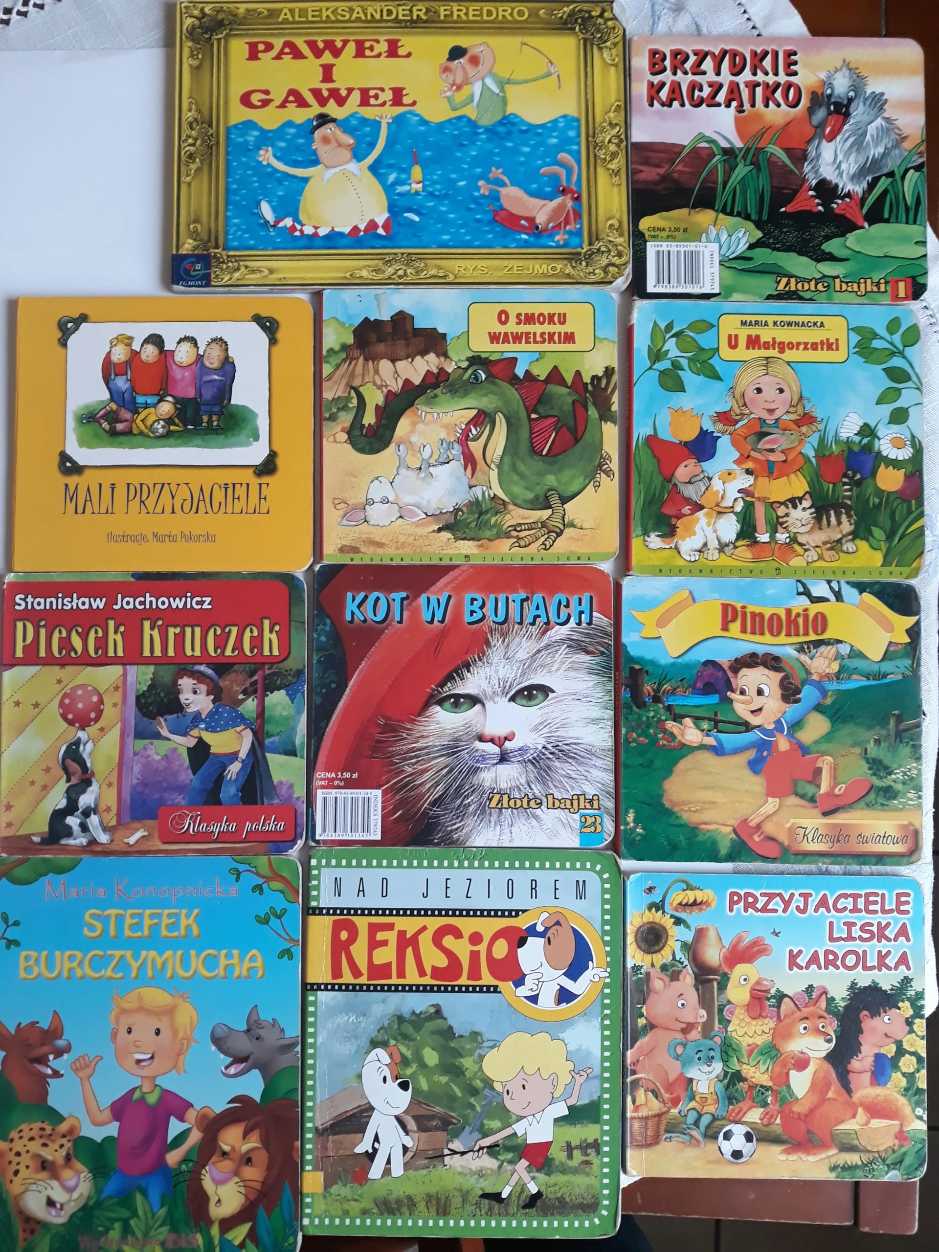 Zestaw 11 książeczek dla dzieci Paweł i Gaweł O Smoku wawelskim Brzydkie kaczątko Mali przyjaciele U Małgorzatki Stefek Burczymucha Przyjaciele Liska Karolka Reksio Pinokio Piesek Kruczek Kot w butach