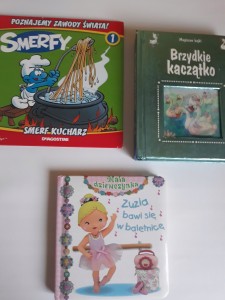 Zestaw 3 książeczek dla dzieci Brzydkie kaczątko smerfy Zuzia bawi się w baletnicę